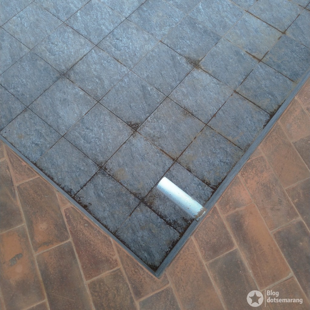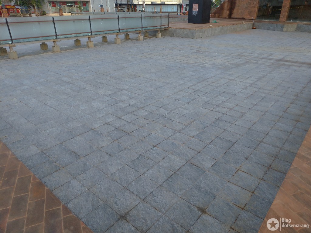 Ada patung yang berada di tengah, entah kami belum tahu kira-kira patung apa yang ditaruh di sana dan masih ditutupi kain besar berwarna merah. Apakah tahun ini bakal selesai dan siap opening?
