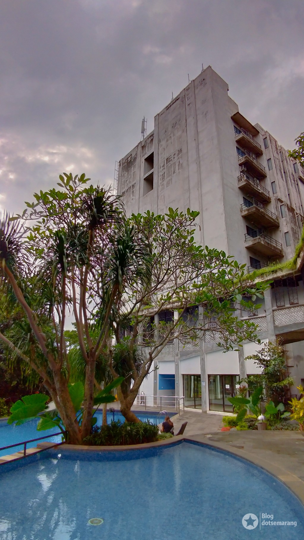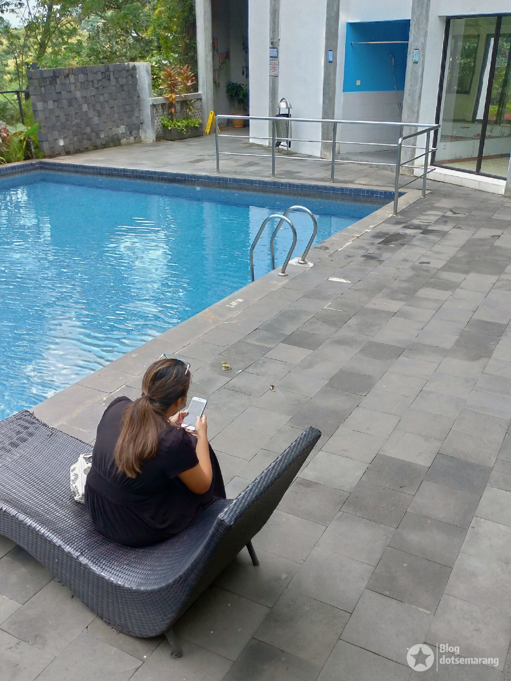 Gambar diambil dengan kamera Zenfone 5. Bagaimana pendapatmu tentang suasana kolam renang hotel Oak Tree Semarang ini?