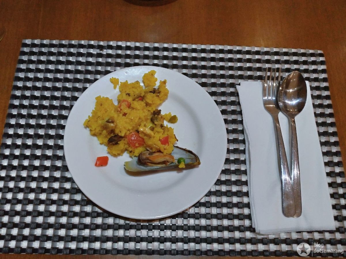 Dalam halamannya yang kami jadikan referensi, Paella berarti wajan tradisional dari daerah Valencia. Meski sedikit berbeda dengan yang dihidangkan di hotel, menu ini dianggap sebagai salah satu sajian paling terkenal dalam masakan Spanyol.