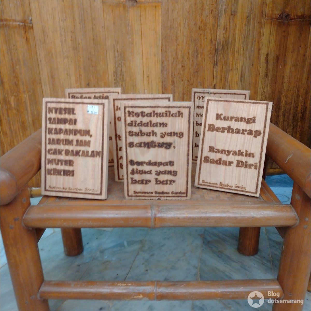 Tanggal 4 Desember kemarin, kami sudah memposting tentang Sumowono Bamboo Garden di blog utama kami, dotsemarang. Salah satu ruangan yang menarik di sana adalah ruangan galeri ini. Selain bisa melihat bentuk bambu yang unik, kita dapat melihat hasil karya yang menarik.