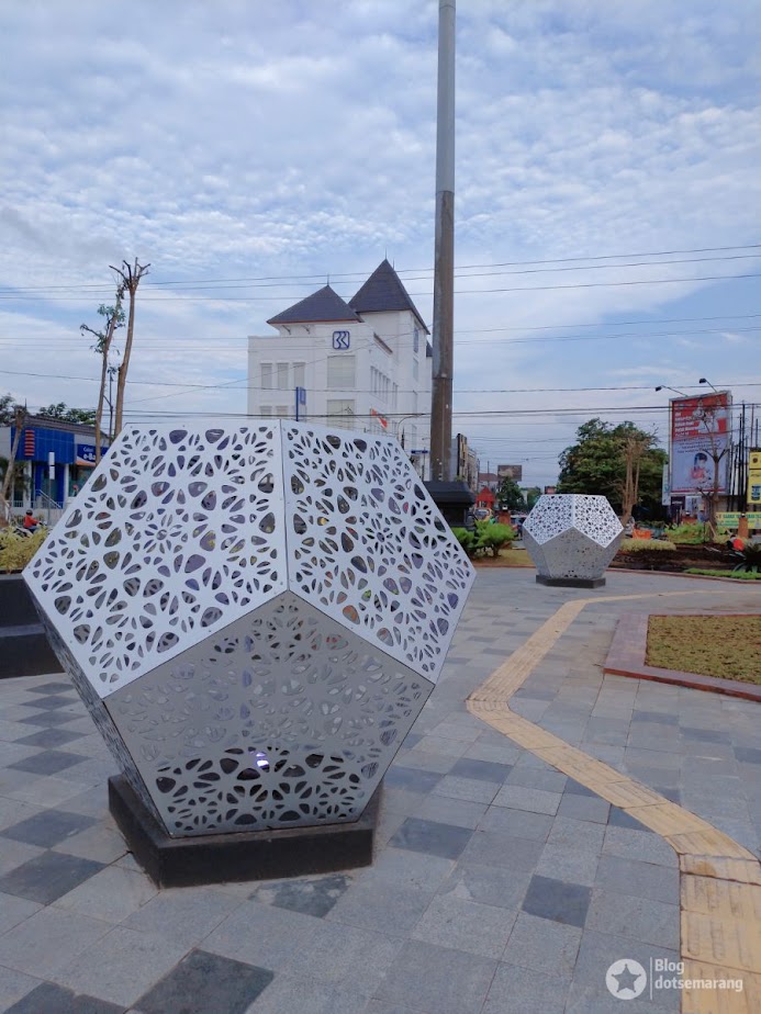 Ada yang menarik dengan ikon Taman Bubakan yang berukuran besar atau kotak-kotak berlubang di sana. Ternyata itu adalah tempat lampu. Jika malam hari, cahaya lampunya bisa berganti-ganti tiap 30 detik.