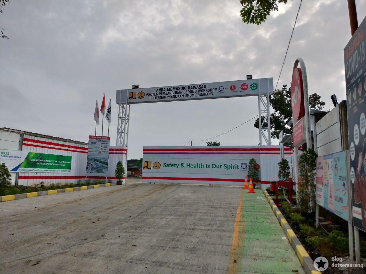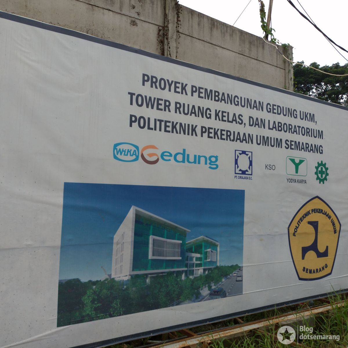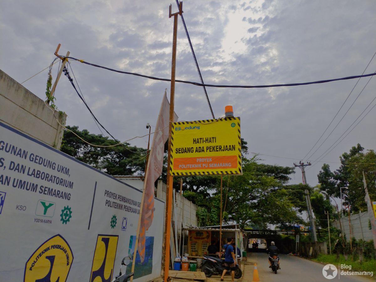 Gambar ini ada yang diambil bulan Januari 2022. Kami penasaran dengan pengerjaan proyek yang sedang pengerjaan di sini. Apalagi perlahan-lahan, bangunan sudah tinggi dan hampir jadi. Di sini akan dibangun gedung baru Politeknik Pekerjaan Umum Semarang.
