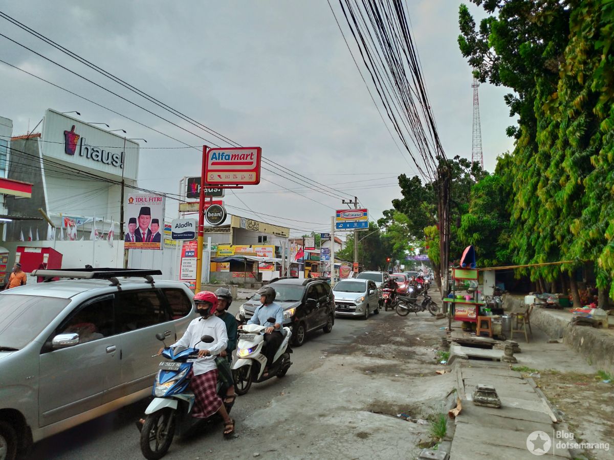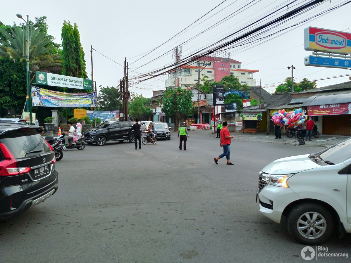 Jalan arah ke Masjid Agung Jawa Tengah seperti biasa padat, namun kali ini sepertinya aparat sudah sigap. Kendaraan bisa diarahkan dengan baik.