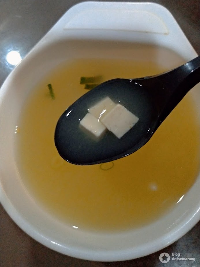 Chicken Garlic yang kami bawa adalah daging ayam. Dalam satu kotak, ada salad, miso soup dan nasi. Hmm...buat ngiler saja kalau membayangkan, apalagi Kota Semarang sedang dingin cuacanya setelah hujan.
