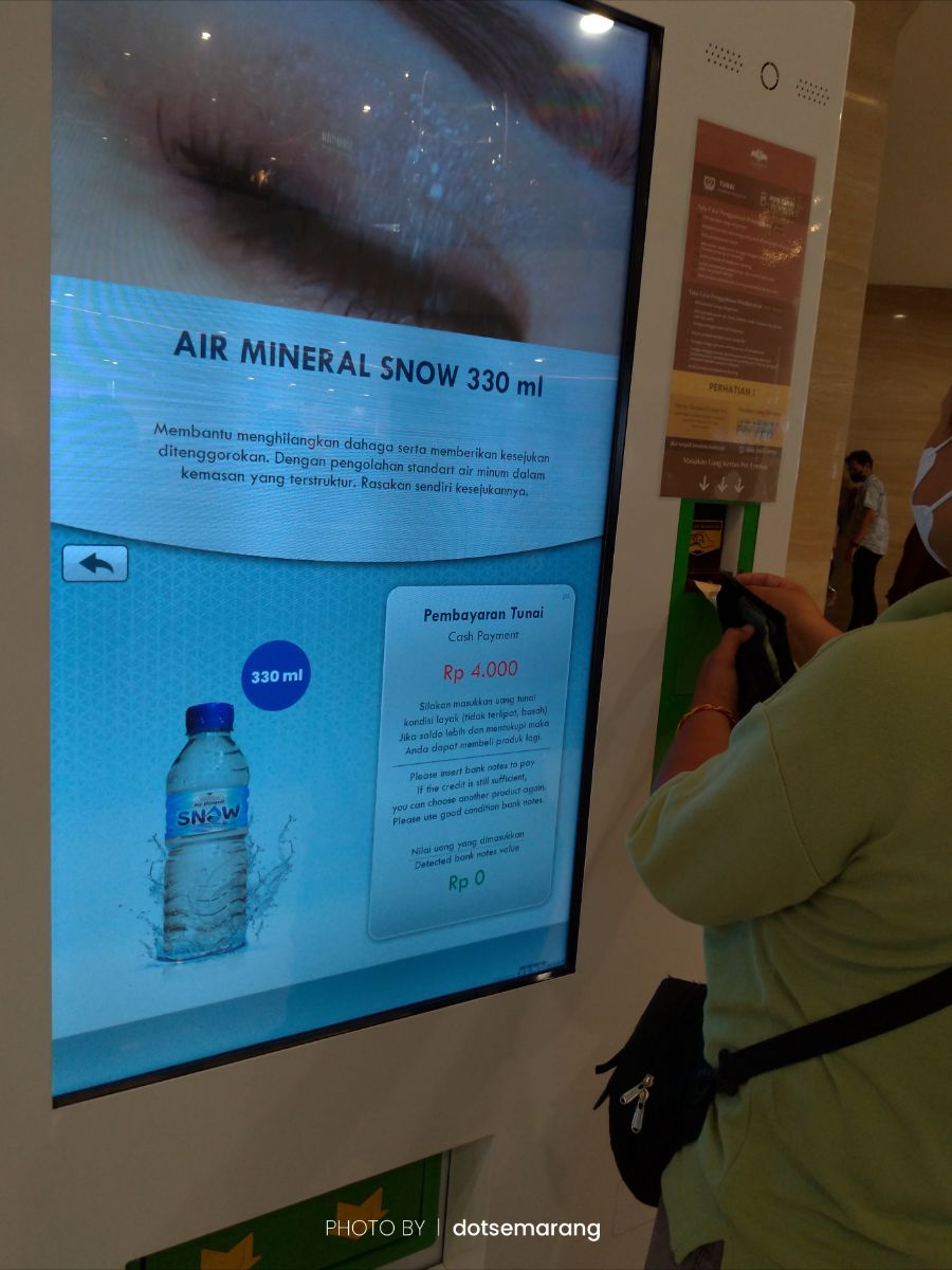 Gambar ini kami ambil tanggal 24 Agustus 2022. Hampir saja kami melupakannya. Bila sebelumnya kami pernah melihat Mesin penjual minuman atau vending machine ini di bandara, kali ini ada di Mal Tentrem Semarang.