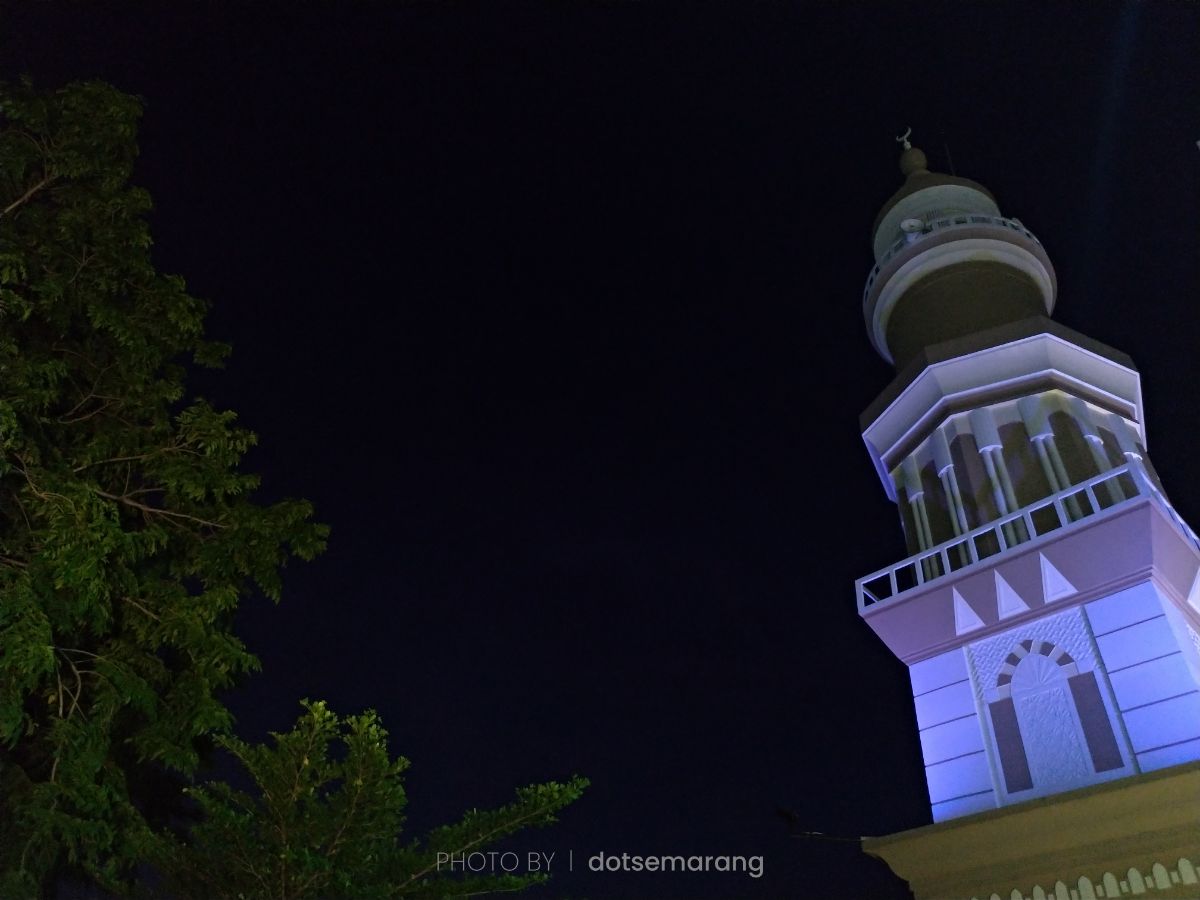 | Jika kamu ke sini malam hari, maka akan melihat warna-warni bangunan menara Masjid |
