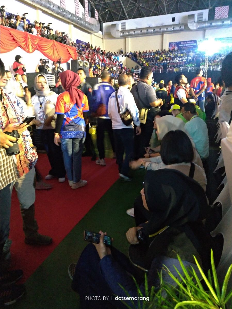 Semua kontingen hadir di sini, bisa dibayangkan ada ribuan orang turut meriahkan event tahunan ini. Selain Nella Kharisma dan pasangan yang menjadi bintang tamu menghibur, ada Kotak band yang juga tampil saat membuka. Dan tari budaya juga yang bisa dilihat di YouTube dotsemarang.