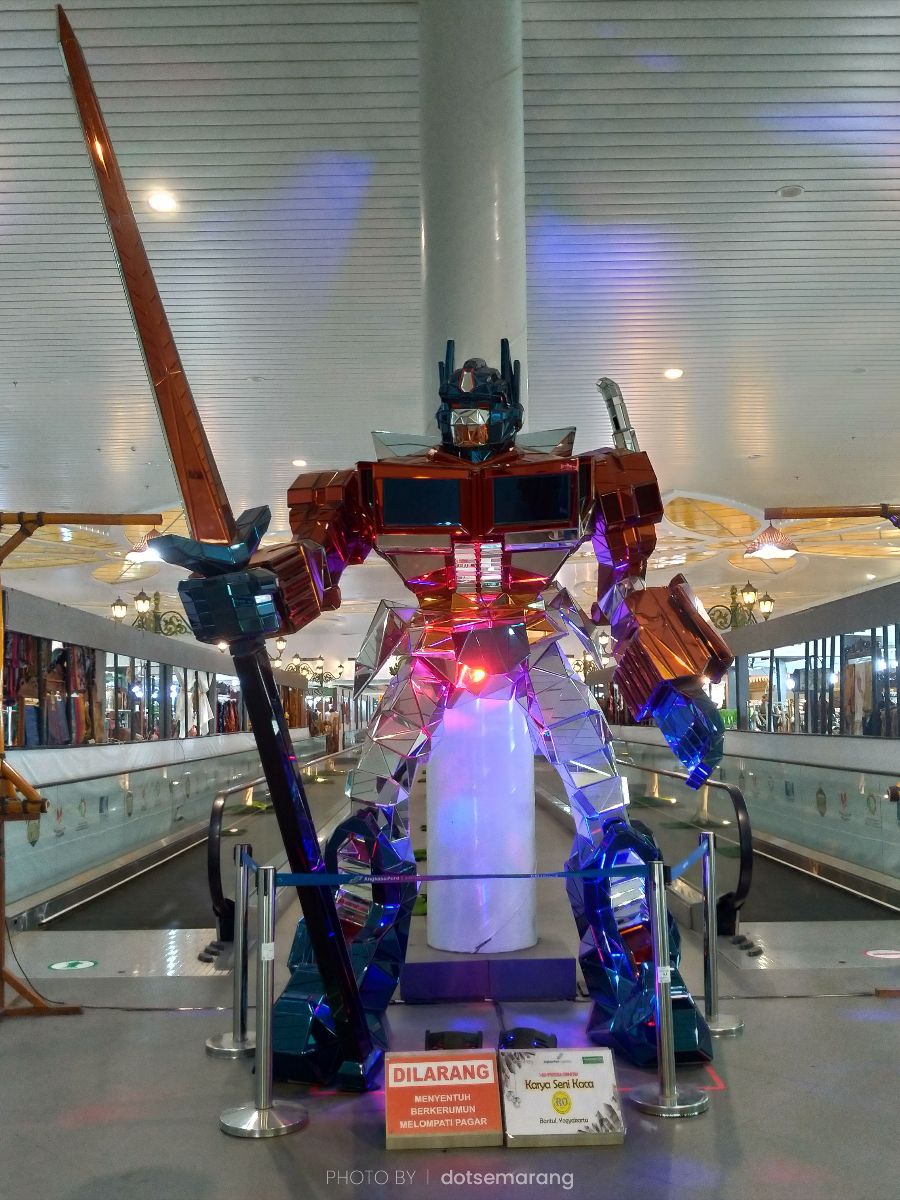 Karena ini adalah karya seni, pengunjung diharapkan tidak menyentuh dan mendekati terlalu dekat. Bisa dilihat tulisan larangan di dekat kaki si robot.